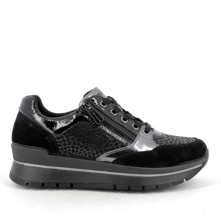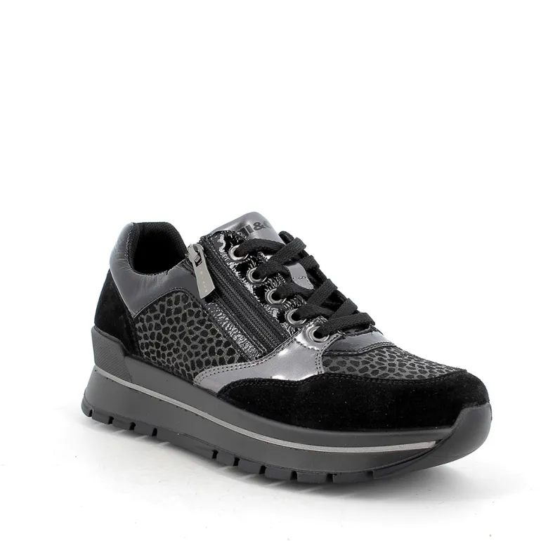 Sneakers con Lacci e Cerniera Laterale Grigio/Nero
